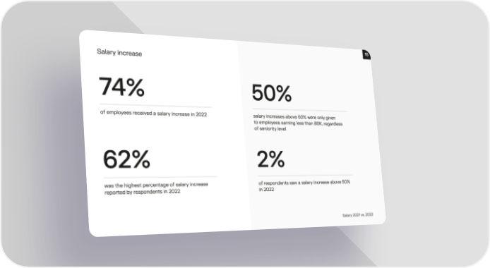 15 Salary increase 74% 50% of employees received a salary increase in 2022 salary increases above 50% were only give渀 to employees earning less than 80K, regardles猀 of seniority level 62% 2% was the highest percentage of salary increase of respondents saw a salary increase above 50% reported by respondents in 2022 in 2022 Salary 2021 vs. 2022